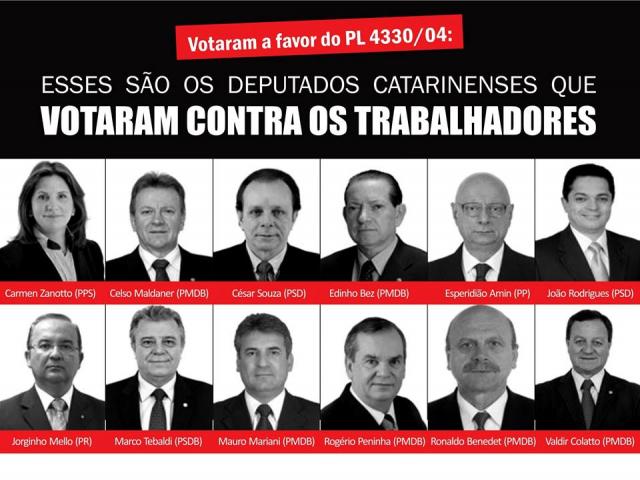 21/3/2016 - Deputados de SC que votaram contra vocĂȘs trabalhadores!!!!!