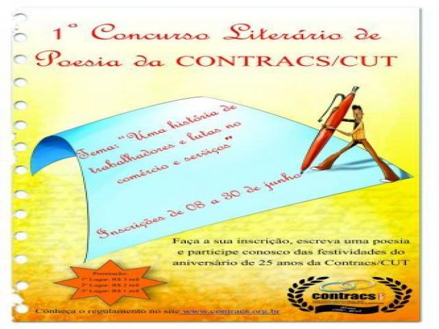 Em comemoração aos 25 de história e lutas, a Confederação Nacional dos Trabalhadores no Comércio e Serviços da CUT (Contracs/CUT) realizará o I Concurso Literário de Poesia voltado especificamente aos trabalhadores e trabalhadoras do ramo do comércio e serviços de nossas entidades filiadas.