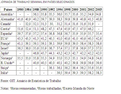 No entanto, mesmo sendo uma norma antiga, a redução da jornada passou a ser crescente em vários continentes a partir de 1980 e hoje já se configura numa realidade mundial. Veja no quadro abaixo: